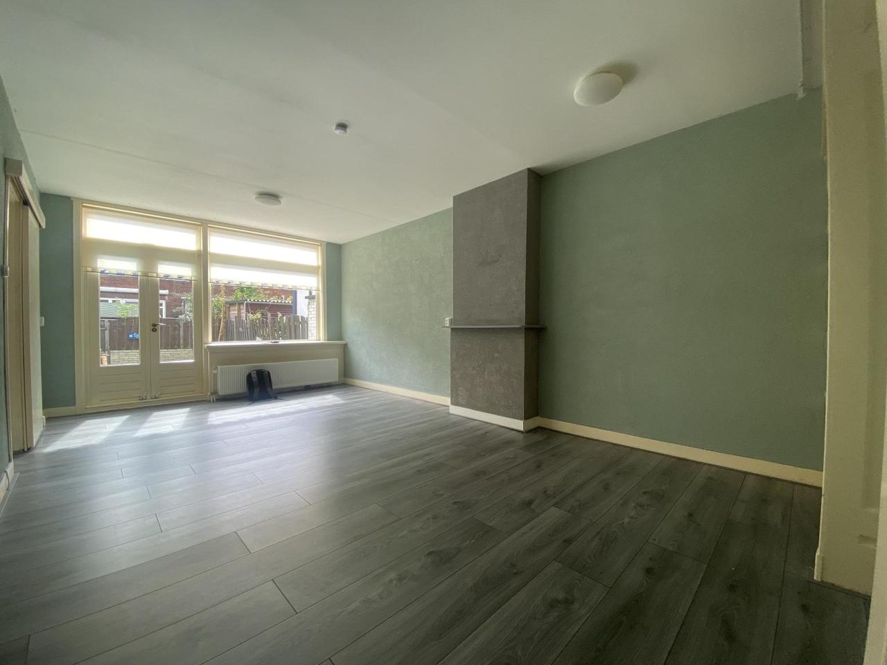 – Woonkamer met laminaatvloer en toegang tot de ruime tuin