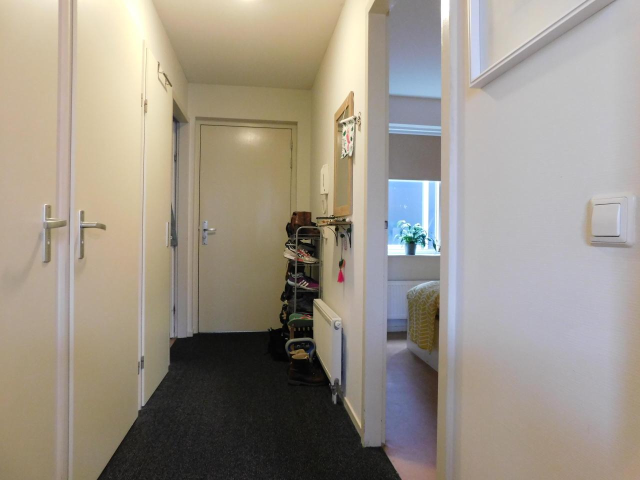 De woonkamer is gelegen aan de voorzijde van het appartement en is voorzien van een nette laminaatvloer. Wegens de grote raampartijen is er voldoende lichtinval, met tevens een leuk uitzicht op de winkelstraat. De open keuken is voorzien van inbouwapparatuur, zoals een koel-/vrieskast en gaskookplaat met afzuigkap.