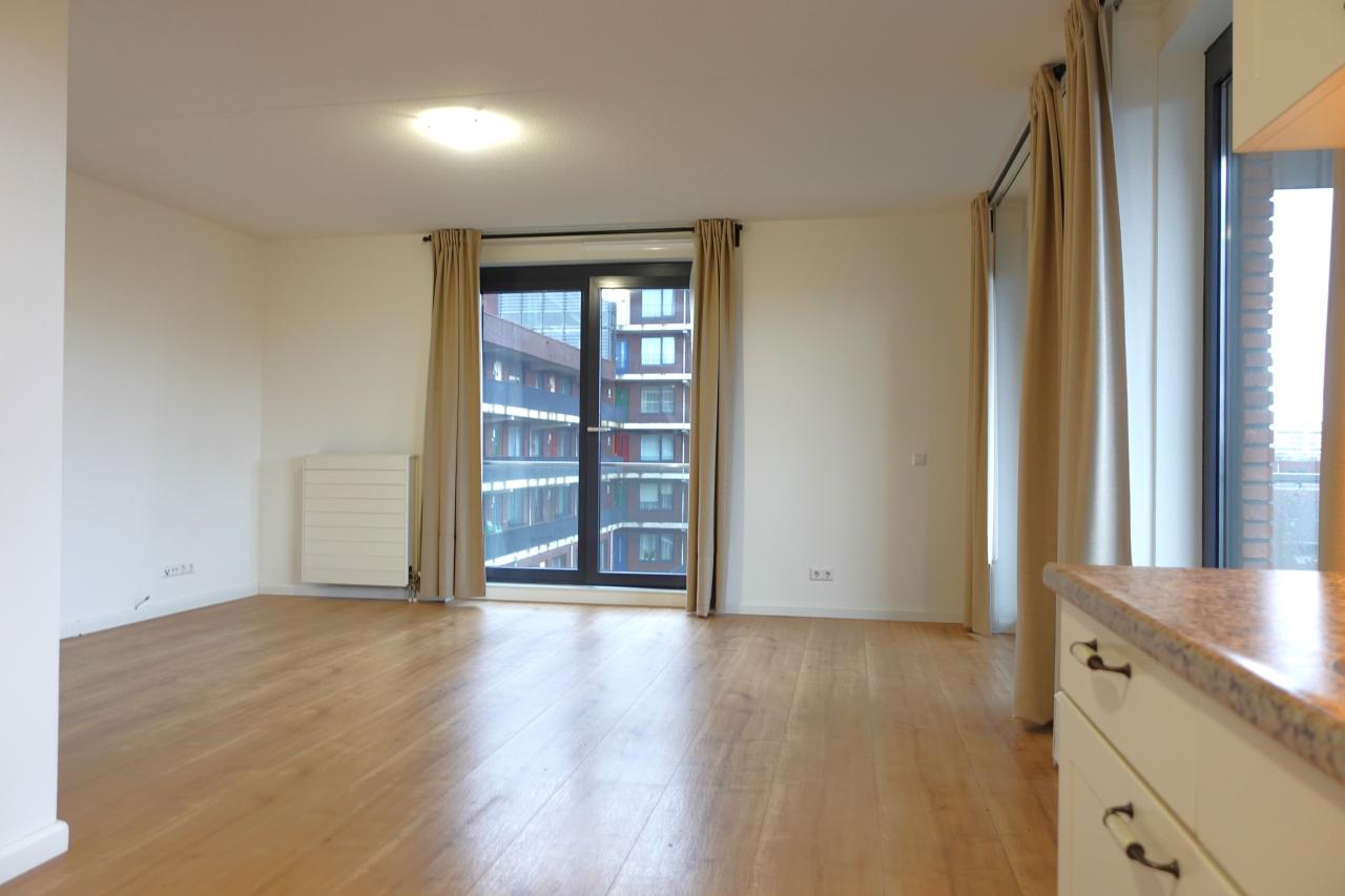 Via L-vormige hal zijn alle ruimtes in het appartement toegankelijk. Er is een aparte wc, een meterkast, een gangkast, de badkamer, de slaapkamer en de woonkamer met open keuken. Via de ruime open keuken is de woonkamer te bereiken. Door de grote raampartijen is er niet alleen een mooi uitzicht, er is ook veel lichtinval, waardoor het een prettige lichte ruimte is. Vanuit de woonkamer is er een frans balkon op het noordoosten en een ruim balkon op het zuidoosten, dat een uitzicht biedt over de stad te bereiken. De open keuken is voorzien van alle gemakken zoals een koelkast met vriesvak, een combi magnetron oven, een vaatwasser, een inductiekookplaat en een afzuigkap. De volledig betegelde badkamer is voorzien van een douche, een wastafel met meubel en de aansluiting voor een wasmachine en wasdroger.