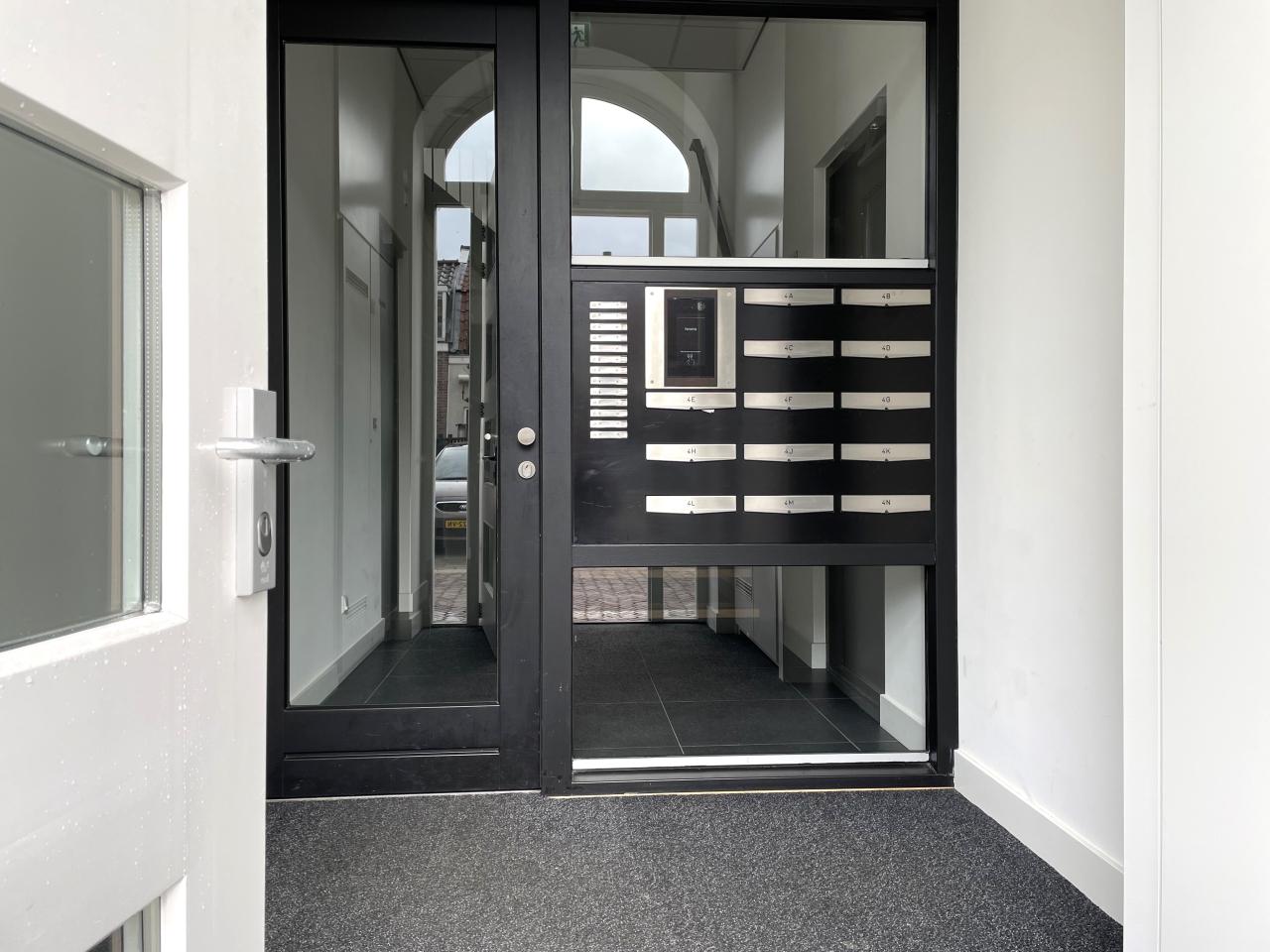 Begane grond: Entree in de centrale hal met bellentableau en brievenbussen.