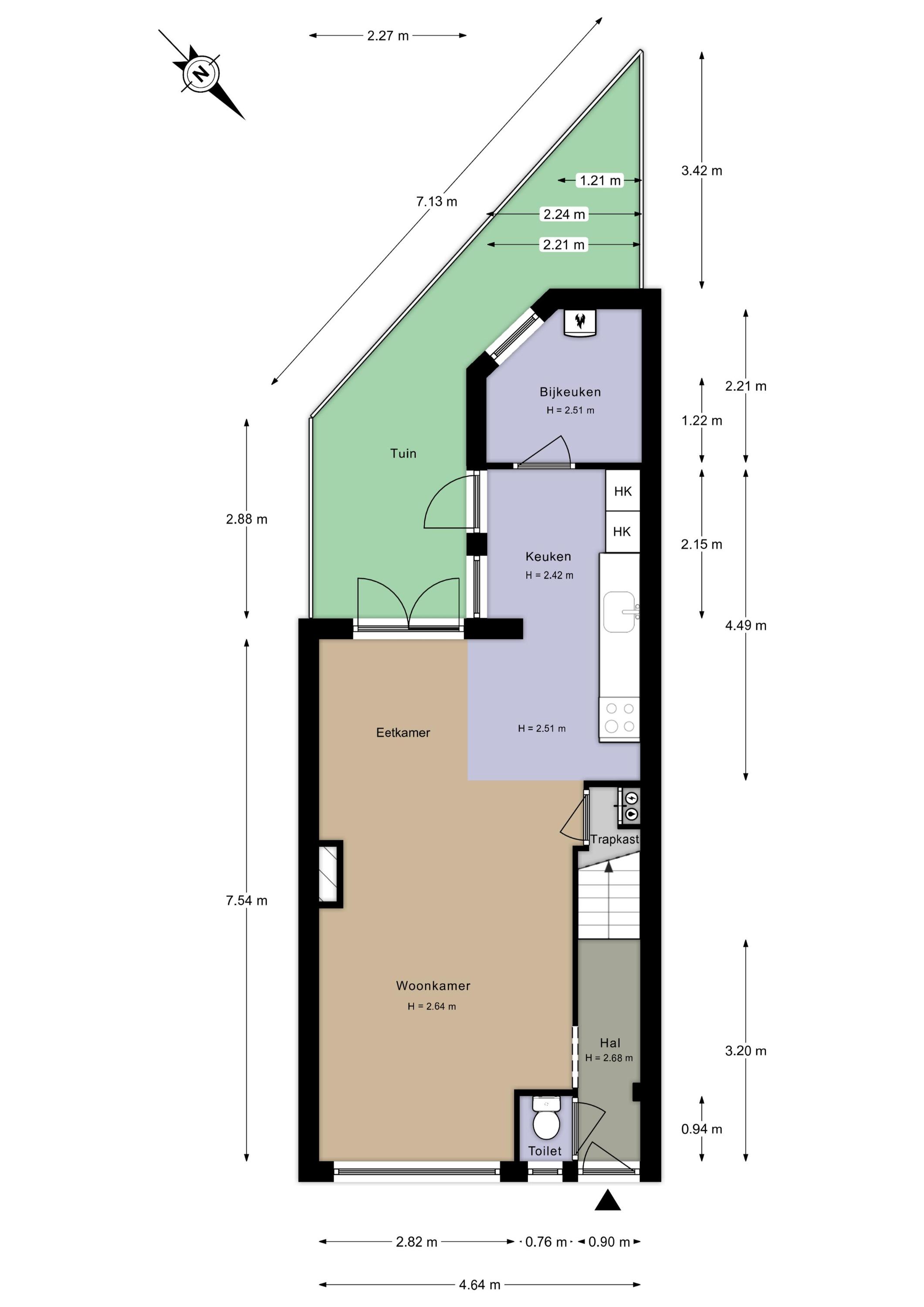 Entree, hal met toilet en trapopgang. De lichte woonkamer biedt voldoende ruimte voor zowel een comfortabele zithoek als een eettafel. De keuken is modern en functioneel ingericht en staat in verbinding met de achtertuin.