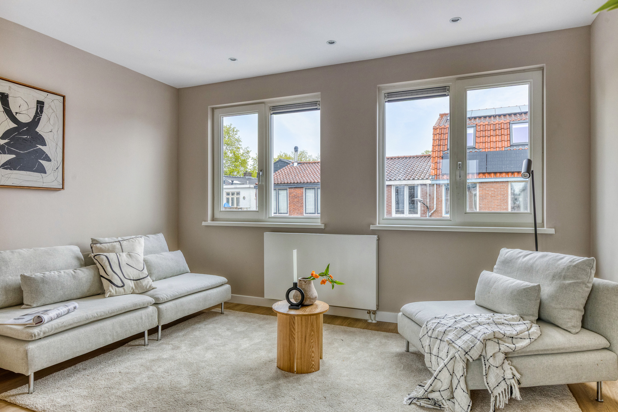 A wonderful opportunity to live in the popular Bloemenbuurt in Hilversum Zuid. This completely renovated, ready-made luxury apartment is located on the first and second floor and has a spacious living area, a roof terrace and has its own storage room on the ground floor. The two-bedroom house has been completely and high-quality renovated with craftsmanship and use of good materials and is therefore practical, luxurious and energy-efficient (energy label A). You really don’t have to do anything here; you can move in straight away! The roof terrace is located on the south, so you can enjoy the sun for a long time here!