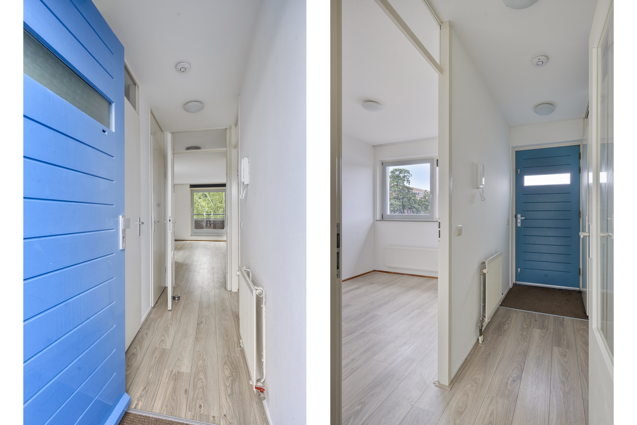 Via de trap bereik je de bovenste verdieping, waar je het appartement binnenkomt in de hal met toegang tot de meterkast, een praktische bergkast met aansluiting voor de wasmachine en een aparte kast met de cv-installatie.