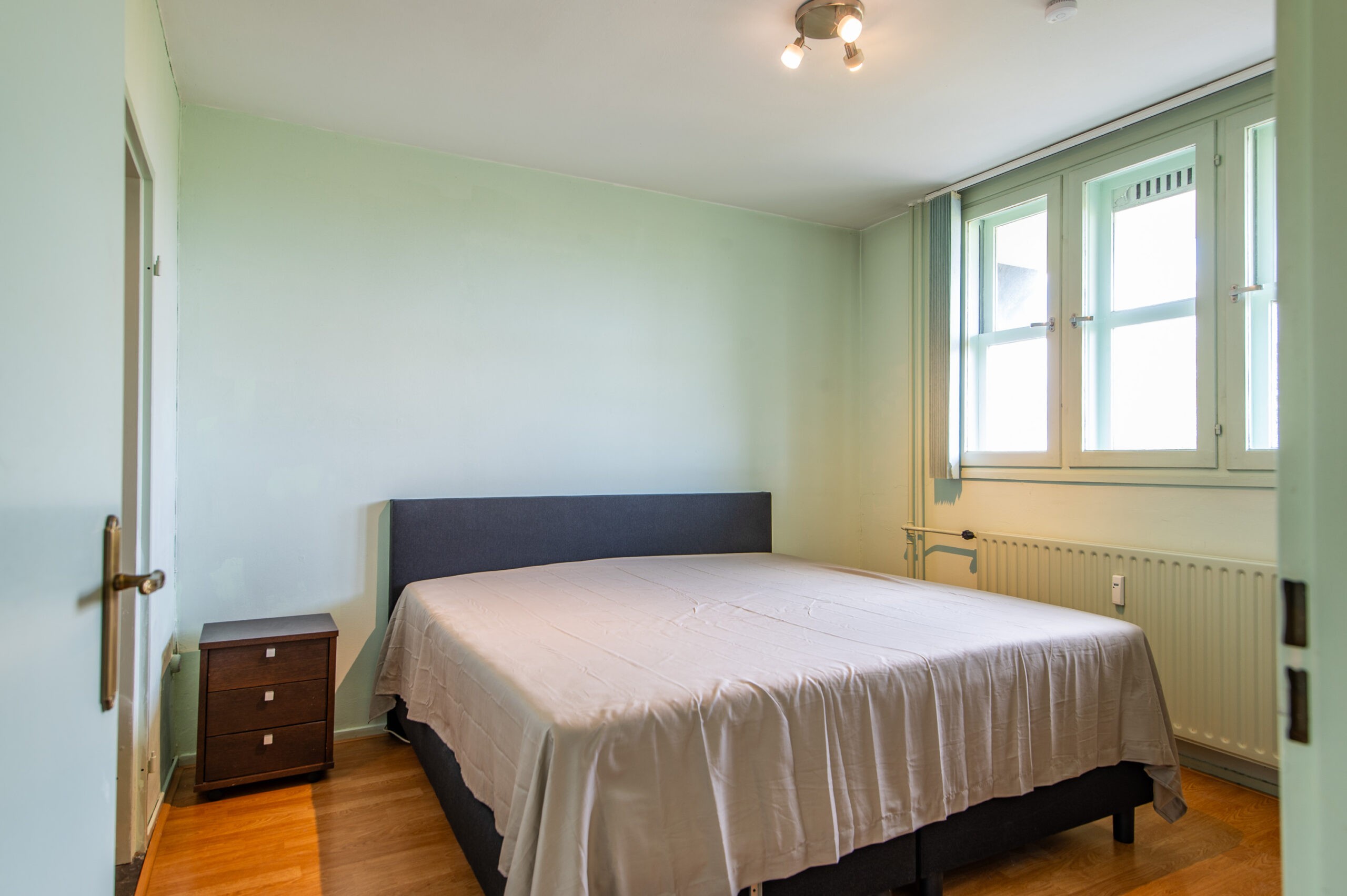 De slaapkamer is gelegen aan de rustige achterzijde van het appartement en biedt toegang tot de badkamer. De badkamer is voorzien van een douchecabine, wastafel in meubel en de aansluitingen voor de wasmachine. Verder is de boiler in de badkamer geplaatst. Dit betreft een huurboiler van Eneco (€ 16,45 per maand)