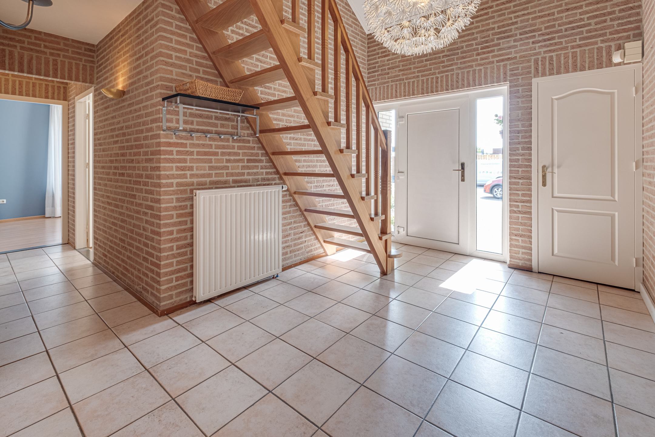 Je komt de woning binnen in een ruime hal waarin zich ook de trap met vide naar de verdieping bevindt.