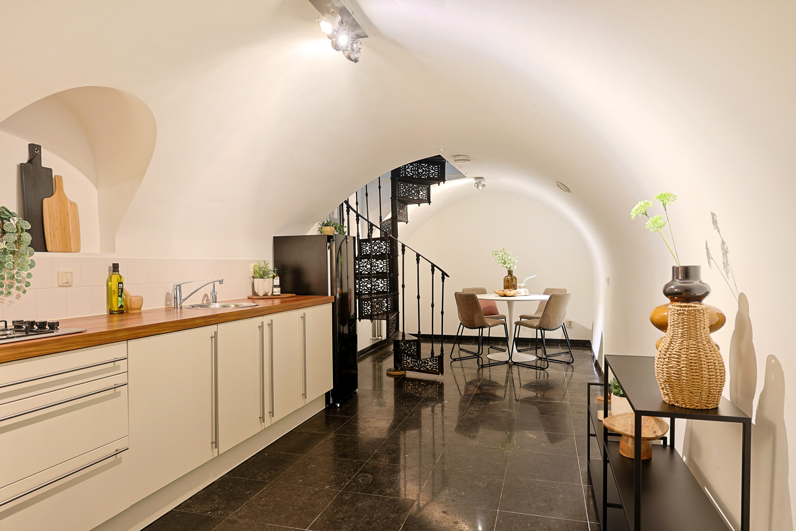 This distinctive property, with a rich history dating back to the late Middle Ages, combines historic charm with modern living comfort. The core of the building reflects medieval architectural style, while the current layout and construction largely date from an early seventeenth-century renovation. Two ground-floor rooms still feature beautiful stucco ceilings, the so-called “Kohlner Decken,” which further highlight the building’s historic character. In the eighteenth century, the front section of the house was raised, and later modifications from the late eighteenth and nineteenth centuries remain visible. In the twentieth century, the property served as a school and university building. Around 2008, it was carefully converted into six modern apartments while preserving its historic character. The Plompetorengracht is one of the quietest canals in Utrecht, lined with impressive sixteenth- and seventeenth-century canal houses. At the same time, shops and cozy restaurants are just around the corner, offering the perfect combination of tranquility, history, and urban convenience.