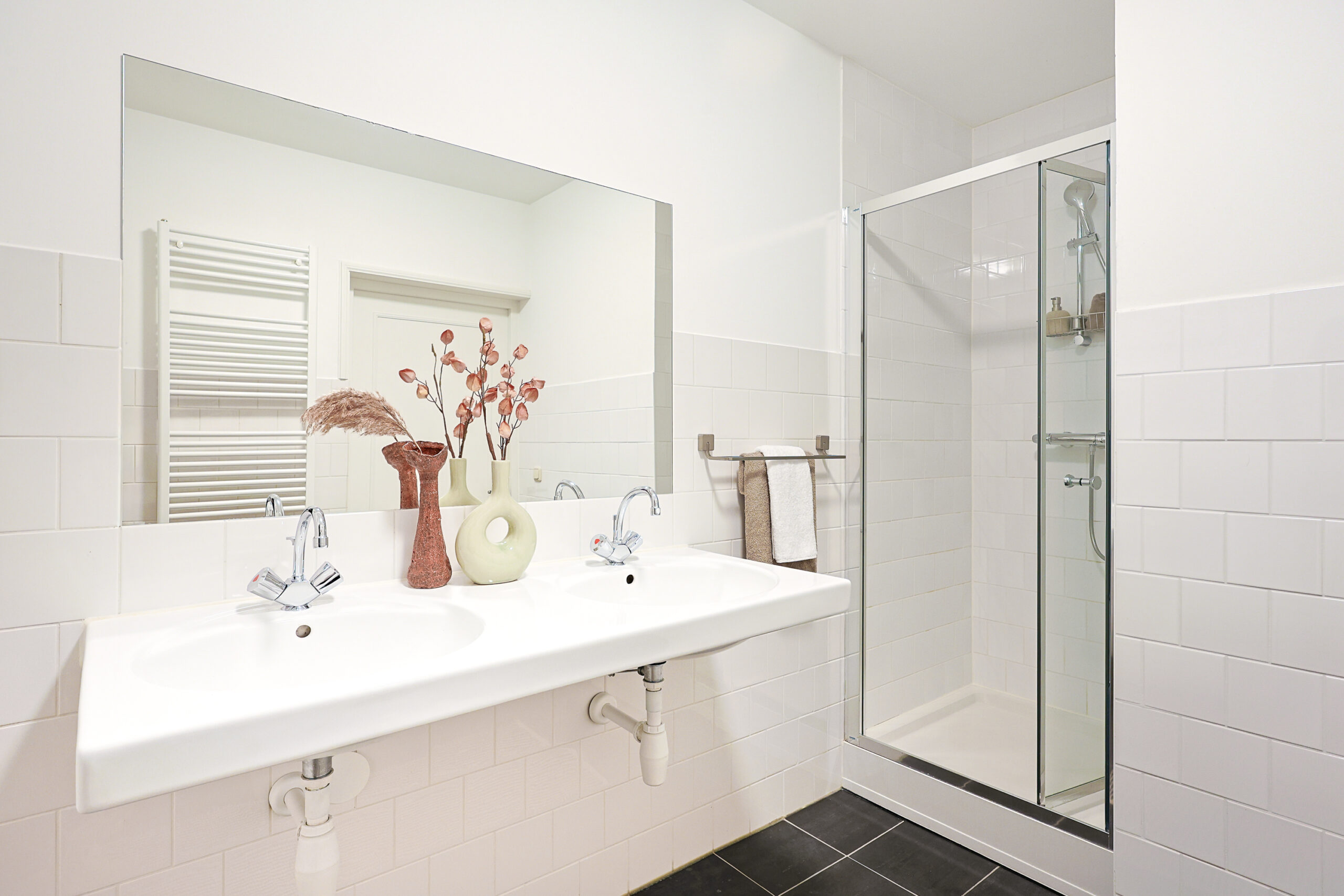 The bedrooms are located at the quiet rear of the property. One of the bedrooms, through French doors, provides access to the east-facing balcony. This room also features a Louis XVI fireplace. The bathroom is equipped with a double sink, a shower, and a washing machine connection. The basement, where the kitchen is located, can be reached via a steel spiral staircase. The kitchen is fitted with a hob, a fridge-freezer combination, and a dishwasher. From the kitchen, there is access to two (spacious) storage rooms. From one of the storage rooms, the canal can be reached. Due to renovation works by the municipality, the largest storage room has a temporary beam structure for reinforcement in anticipation of the renovation plan for the warehouse cellars.