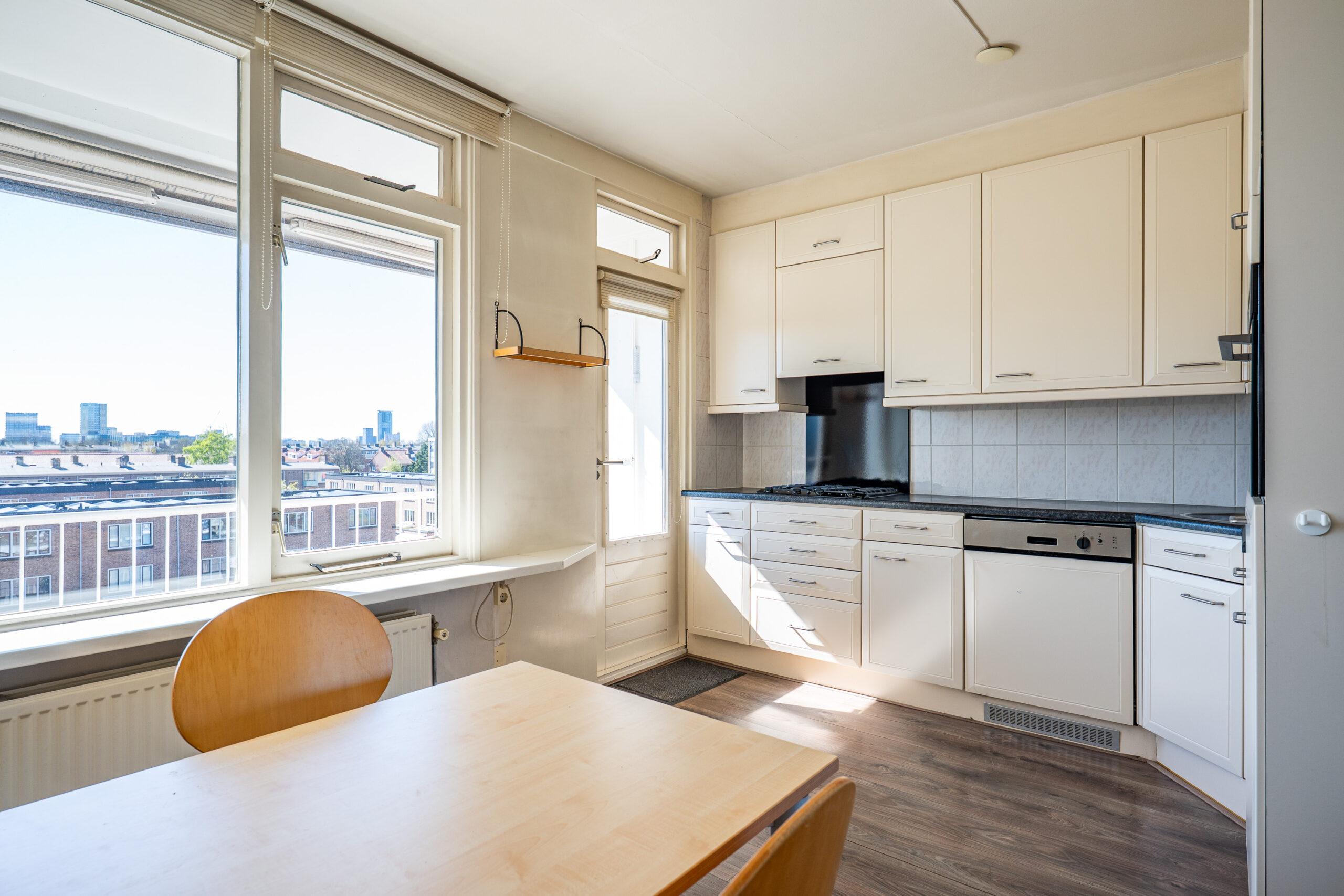 This spacious maisonette with a sunny balcony, no upstairs neighbors, and a storage unit in the basement is situated in a very practical and sought-after location in Voorburg, above the ‘De Julianabaan’ shopping center.