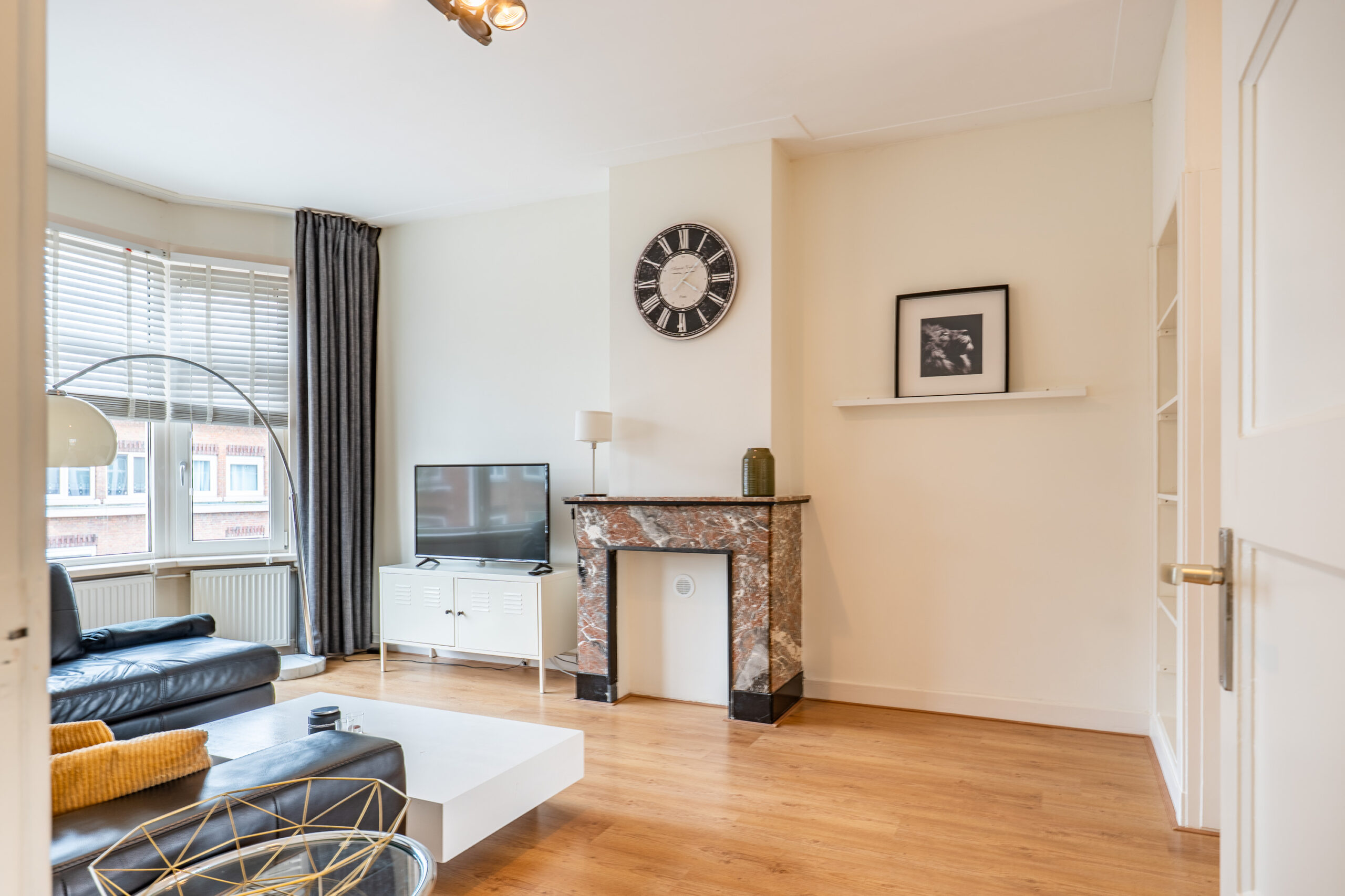 Modernized top-floor apartment with many characteristic features, a sunny balcony spanning the full width, and located within walking distance of the Laan van NOI train station.